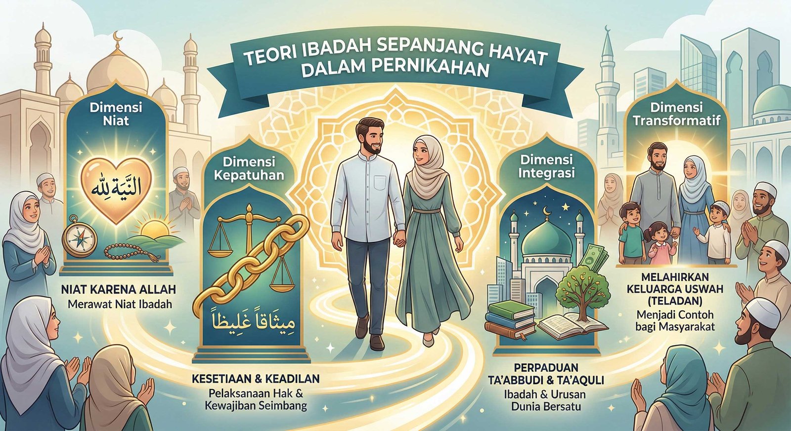 Ikatan yang kokoh ini menuntut pertanggungjawaban di dunia dan akhirat. Oleh karena itu, teori ibadah sepanjang hayat dalam pernikahan dapat dibedah secara mendalam melalui empat dimensi utama yang saling berkaitan erat.